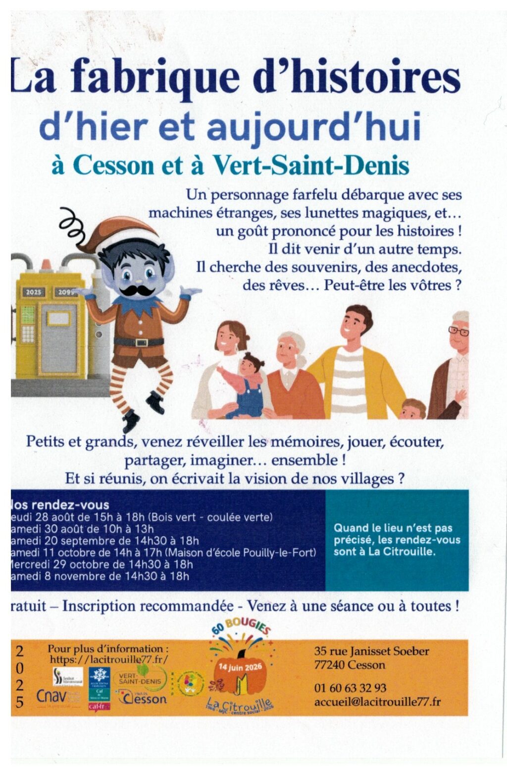 SAMEDI 11 OCTOBRE DE 14H à 17H – à Maison d’école de Pouilly-le-Fort Sur inscription auprès de la Citrouille – Gratuit 01.60.63.32.93 accueil@lacitrouille77.fr La fabrique d’histoires d’hier et aujourd’hui Un[…]