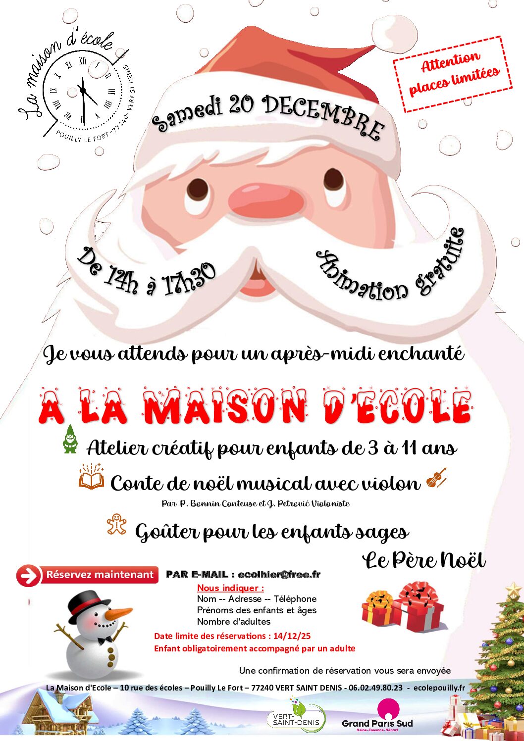 Un grand MERCI pour votre fidélité à la Maison d’école Toutes nos places pour l’animation de NOËL sont parties en un week-end et sommes surpris et enthousiasmés que nos animations soient autant appréciées et demandées. Nous sommes désolés nous ne prenons plus de réservation car nous sommes complets. Une liste d’attente est ouverte en cas…